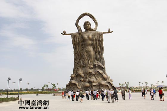 網媒記者參觀黃河母親塑像(中國臺灣網 李婷婷 攝)