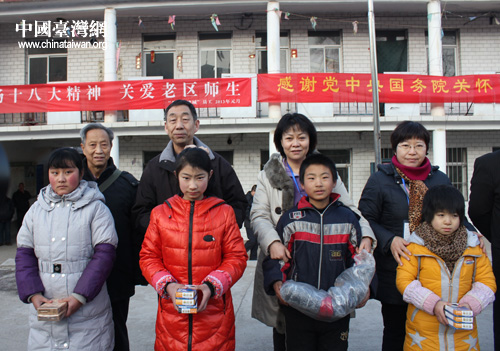 1月5日,“北京臺灣城”28名員工在董事長郭瑞先帶領下,冒著數九嚴寒從北京驅車到位于太行山深處的革命老區阜平縣,向該縣龍泉關鎮小學300余名師生贈送書刊、筆記本和手套。(中國臺灣網發)