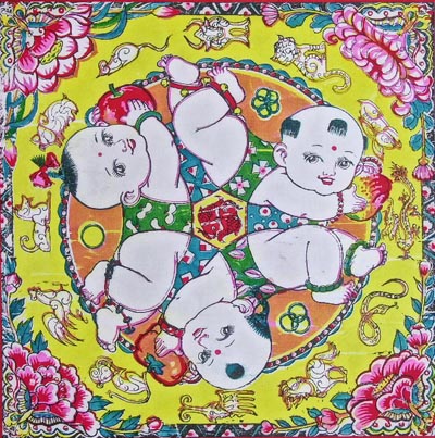 河北武強,一向有“年畫之鄉”的稱譽。它與天津楊柳青,江蘇桃花塢(wū),山東濰(wéi)坊,四川綿竹年畫齊名,是中國的五大年畫產地之一。武強年畫已有500多年的歷史,在河北、山西、內蒙古、河南一帶很有影響,是春節期間人民群眾喜聞樂見的一個畫種。 武強年畫的制作工藝是先把圖案刻在木板上,然后涂色印制在紙上,再點染上各種顏色,所以也叫木版水印年畫。武強年畫最早印制灶王爺、天地神、門神較多。