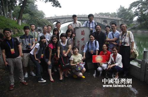 參加“情系燕趙”活動的臺灣文化界人士在趙州橋合影留念(中國臺灣網記者 蕪同 攝)