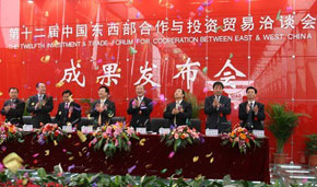 在陜西西安舉行的第十二屆中國東西部合作與投資貿易洽談會經過5天的展示與洽談,4月9日正式閉幕。西洽會執委會于4月9日上午舉行成果發布會,宣布本屆西洽會共簽訂項目合同1519個,總投資3580多億元,創歷屆西洽會之最,大會規模和影響進一步擴大。