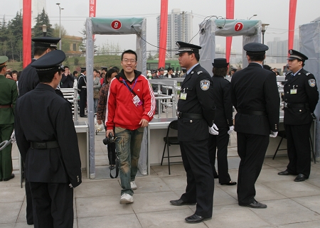 西部網訊 第十一屆西洽會4月6日在西安隆重開幕,為確保會議安全,大會特設19個安全門負責進館安檢工作。