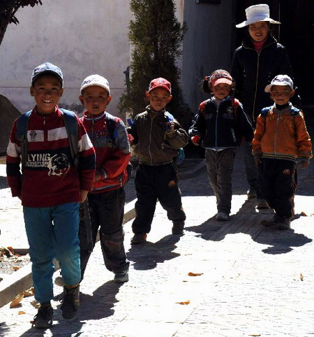 照顧孤兒生活起居的護(hù)理員帶著孩子放學(xué)歸來(10月20日攝)。