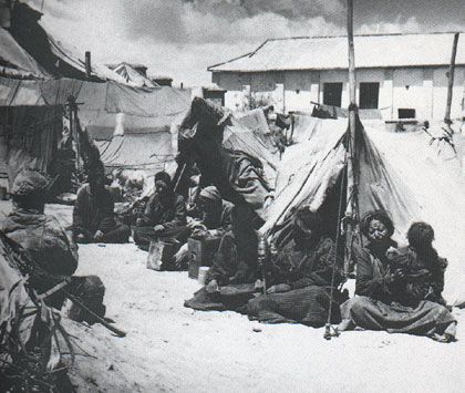 無力支付差祖和高利貸的農奴逃進拉薩,形成一處處乞丐村,這是拉薩魯普乞丐村一角。新華社資料
