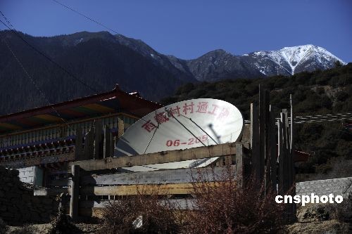 資料圖片:2009年初春,西藏林芝米林縣農村的廣播電視“村村通”工程衛(wèi)星天線。 中新社發(fā) 廖攀 攝