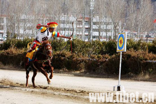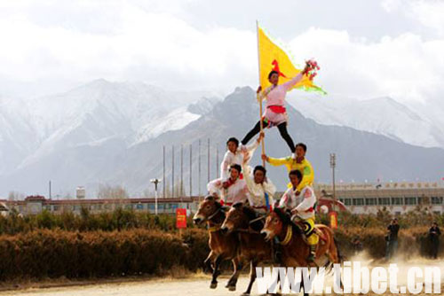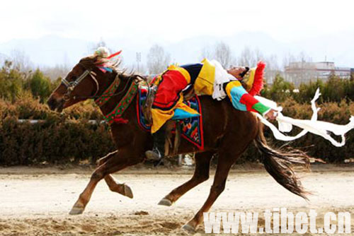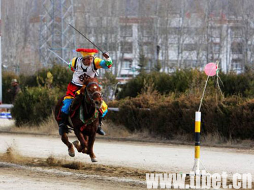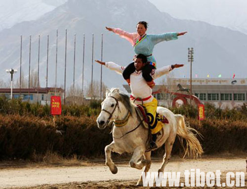 2月27日,藏歷新年初三,拉薩北郊賽馬場迎來了一年一度的藏歷新年馬術表演。 今年的馬術表演活動有單人單馬,單人雙馬,雙人雙馬、馬上射擊、馬上倒立、馬上撿哈達等近10個表演項目,受到了觀眾的熱烈歡迎,為古城新年增添了更加喜慶的節日氣氛。