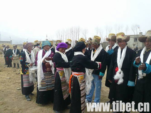 婦女們為參賽者敬獻切瑪、青稞酒、酥油茶。 攝影:曲曉麗