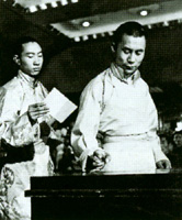 。保梗担的辏珴蓶|、劉少奇、周恩來和十四世達賴喇嘛、十世班禪一起,在北京歡度藏歷木羊新年。