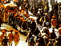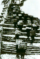 農奴主外出由農奴背馱,行走山區陡坡小道