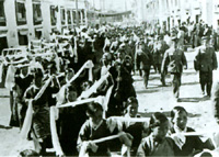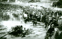 翻身農奴憤怒焚燒三大領主據以壓迫和剝削他們的高利貸債契和人身依附的文契