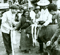 農奴們集會,強烈要求徹底摧毀西藏萬惡的封建農奴制度