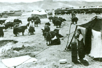 當雄縣翻身牧民央宗家分到的新帳篷和畜群