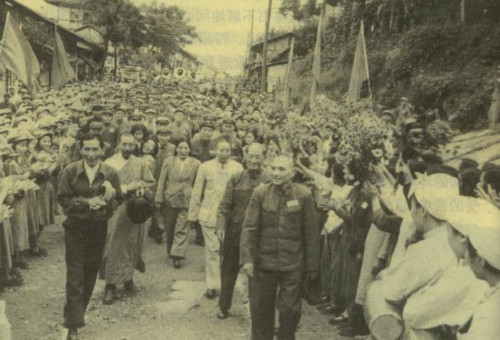 4月27日 班禪額爾德尼·確吉堅贊及班禪行轅官員45人,在范明陪同下自西寧抵達北京,協商和平解放西藏問題。在北京期間,班禪參加了“五一”節觀禮,并向毛澤東主席敬獻哈達和禮品,受到毛澤東主席親切接見。[詳細]