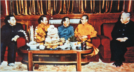 2月24日 為慶祝藏歷木羊年新年,達賴、班禪在北京舉行盛大宴會,毛澤東、劉少奇、周恩來應邀出席。毛澤東主席在宴會上致詞:“我們大家應當努力,進一步加強和鞏固我國各民族間的團結。進一步加強和鞏固漢藏民族以及藏言辭內部的團結,共同建設我們偉大的祖國。”