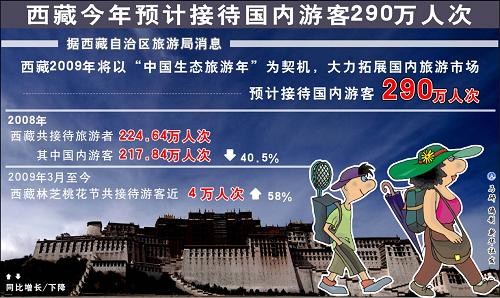 圖表:西藏2009年預計接待國內游客290萬人次