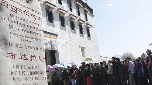 資料圖片:4月21日,游客排隊(duì)準(zhǔn)備參觀布達(dá)拉宮。新華社記者 普布扎西攝