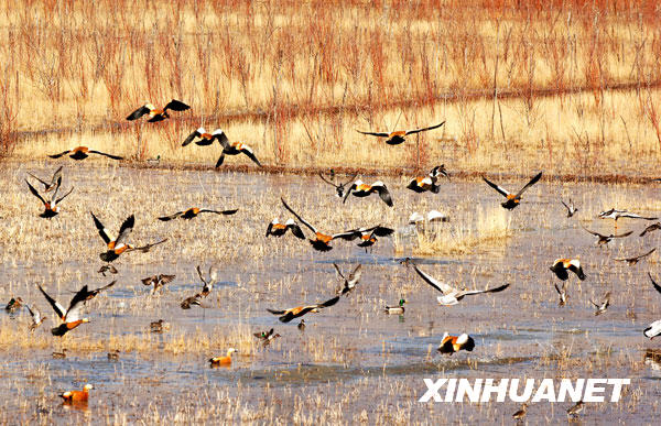 資料圖片:2008年11月26日,一群候鳥在拉薩河濕地飛舞。新華社記者 格桑達瓦攝