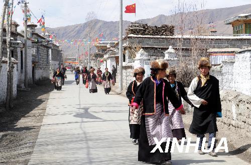 資料圖片:克松村村民走在寬敞的水泥路上(3月23日攝)。新華社記者 格桑達瓦 攝