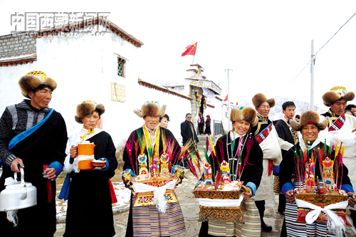 資料圖片:在黨的富民政策指引下,西藏農牧民群眾過上了幸福美滿的生活。2月25日是藏歷土牛年初一,拉薩市城關區納金鄉嘎巴村嘎巴組群眾身著節日的盛裝,歌唱新生活,慶祝藏歷新年。旦增 攝
