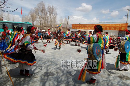 近日,日喀則市司馬卓鼓舞、扎西吉彩金銀銅器制作技藝、江洛康薩青稞酒制作技藝、朋必涼粉制作技藝通過自治區(qū)驗收,被列為第三批自治區(qū)級非物質(zhì)文化遺產(chǎn)保護名錄。目前,初三賽馬節(jié)、后藏藏歷新年正在申報之中。圖為日喀則市甲措雄鄉(xiāng)司馬卓鼓舞農(nóng)民演員在表演古老的司馬卓鼓舞。巴喬 攝