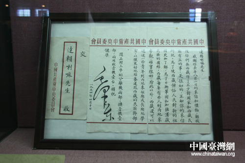 1954年,毛澤東寫給十四世達(dá)賴?yán)锏男拧#ㄖ袊?guó)臺(tái)灣網(wǎng) 李典典 攝)
