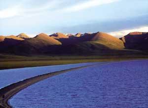 納木錯,藏語意為“天湖”或“天池”。位于拉薩西北約兩百公里處(當雄縣境內),海拔四千七百余米,湖面面積為一千九百四十平方公里,是西藏湖泊之冠,也是世界上海拔最高的大咸水湖。