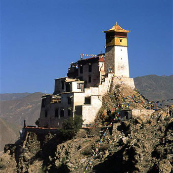 雍布拉康位于山南乃東縣境內、距澤當鎮約12公里處的雅礱河東岸覺姆扎西次日山的山頭上,上窄下寬,三面臨崖。始建于公元前2世紀初,最初并非寺廟,后經第三十二代贊普松贊干布在原來宮殿的兩側修建了兩層樓的殿堂,雍布拉康遂改作經堂,歷代都進行了擴建,逐漸在殿堂的兩邊增建了門廳,南邊增建了僧房。五世達賴時期又在碉樓式建筑上加修了四角攢尖式金頂。寺的規模不大,但由于建寺歷史悠久,加之雄踞山頭,氣勢雄偉壯觀,相傳文成公主夏天常來雍布拉康小住,吐蕃歷代贊普亦常到雍布拉康小憩,因此,該建筑聲名遐邇。自治區人民政府于1962年確定雍布拉康為自治區文物古跡保護單位,凡到山南旅游觀光者無不到此一游。