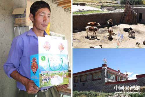 右上圖為牧民養(yǎng)的奶牛,右圖二為具有后藏特色的民居。(中國臺灣網 李典典攝)