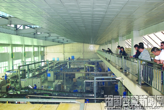 采訪團參觀拉薩啤酒廠生產車間。圖片來源:《西藏商報》)