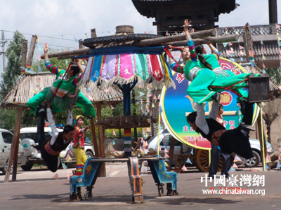 中國臺灣網7月10日消息 昨天,海峽兩岸記者青藏行參訪團一行,參訪了全國唯一的一個土族自治縣——互助土族。體驗了土族質樸獨特的民俗,欣賞了土族的服飾表演、歌曲“花兒”、婚俗表演以及令人叫絕的輪子秋雜技表演。