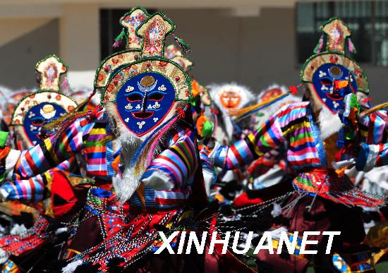 具有600多年歷史的藏戲被譽為“西藏文化活化石”。藏戲是以歌舞形式表現(xiàn)故事內容的綜合表演藝術,與宗教有著深厚的淵源,并受到中原文化和印度文化的影響。藏戲主要是在宗教節(jié)日、民間喜慶場合演出。藏戲中使用的面具造型多樣,生動傳神,服飾豐富多彩,具有鮮明的雪域高原特色。