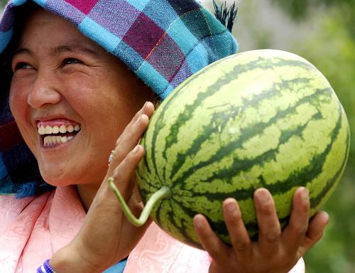 資料圖片:西藏日喀則農(nóng)民喜收西瓜(2007年6月15日攝)。3月2日,國務(wù)院新聞辦公室發(fā)表的《西藏民主改革50年》白皮書指出,50年滄桑巨變,西藏經(jīng)歷了從黑暗走向光明、從落后走向進步、從貧窮走向富裕、從專制走向民主、從封閉走向開放的光輝歷程。當前,西藏經(jīng)濟發(fā)展、社會進步、文化繁榮、民生改善、民族團結(jié)、政通人和,正處于歷史上最好的發(fā)展時期。 新華社記者 普布扎西 攝