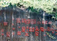 紅崖古跡(又稱紅崖碑,紅崖天書)位于安順以西50公里黃果樹曬甲山上,史稱“南中第一奇跡”,為我國八大神秘文字之一。一壁長達百米,高30米的巨大淺紅色石屏上,有二十余個鐵紅色字,非陰非陽,非籀非篆,非楷非隸,排列不齊,錯落差。奧妙難解的文字,從明代至今,若干中外專家學者親臨考究,眾說紛紜,莫衷一是。光緒年日本學者德丸作藏,德國學者柏如雷·弗崗海爾等考察后認為這一遺跡“含有絕對的神秘性”。近年來的“紅崖熱”,又引起國內很多史學家、考古學家、文字家、民族學家以及外國的一些漢學家的極大興趣,并著力于紅崖研究,但均無定論,紅崖古跡是為“千古之謎”。1994年在歷代20余種摹本中選6種刻于紅崖周圍,供游人鑒賞。