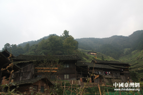 苗寨內建筑大多是木制吊腳樓(中國臺灣網 楊永青 攝)