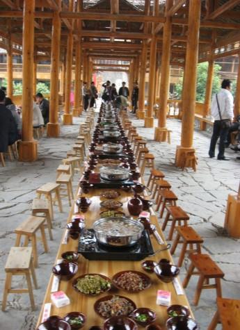 苗寨的特色飯——長(zhǎng)桌飯:體會(huì)不一樣的飲食風(fēng)情