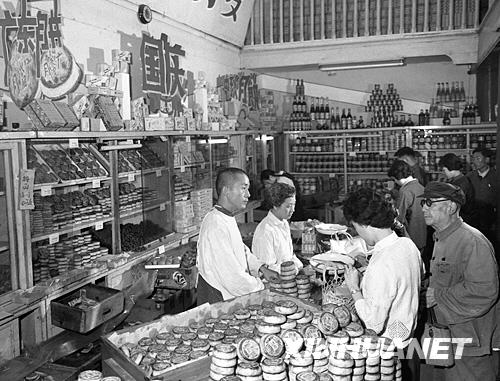 1963年國慶節(jié)、中秋節(jié)接踵而來,北京市食品市場,呈現(xiàn)出一片繁忙熱鬧的景象。全市的各個商場、食品店、水果攤為顧客們準備了豐富多樣的節(jié)日食品,供人們歡度佳節(jié)。為了讓人們過好中秋節(jié),首都各食品商店準備了各色中秋月餅。新華社記者顧德華攝