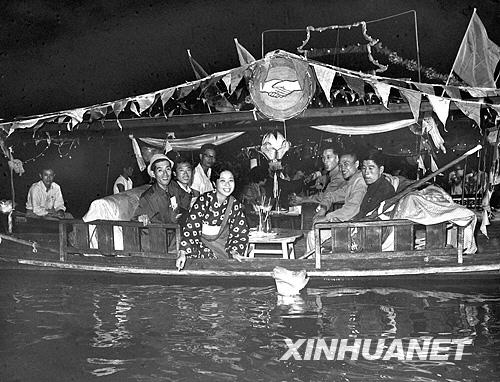 1965年9月10日,來中國參加中日青年友好大聯(lián)歡的日本青年朋友,同杭州市青年泛舟西湖,共度中日兩國人民傳統(tǒng)的中秋佳節(jié)。章耕辛攝
