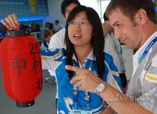 在殘奧村國際區的網吧,聯想正在舉辦一場中秋派對,吸引了很多外國朋友參加。一位俄羅斯朋友對中國的紅燈籠情有獨鐘,他讓志愿者把家人的名字全寫在紅燈籠上。“中秋是團圓的日子,我今天不跟家人在一起,F在她們的名字在燈籠上,晚上我要把燈籠掛在空中,這樣家人就知道我在想他們了。”他說得繪聲繪色,眼神中流露出綿綿的思念。希臘代表團的副團長AIKATERINI女士被掛在墻上的唐詩《望月懷遠》吸引了,她聽工作人員讀過一遍后,連連拍手。“我雖然不懂中文,但我能聽得懂其中的韻律和感情,真是太美了!”