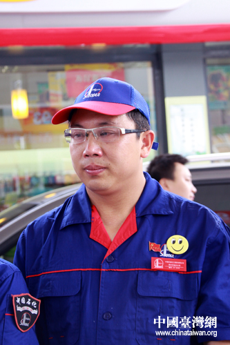 在綿陽科創園加油站,每輛來加油的車輛都能得到免費擦洗車窗的服務。員工們也以為顧客得到滿意的服務自豪。(中國臺灣網 楊麗 攝)