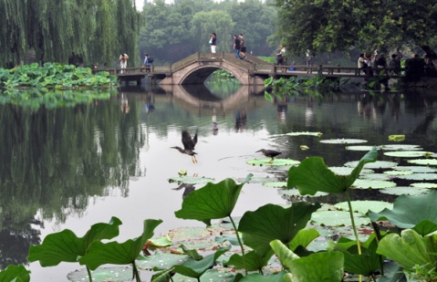 線路二:游船(三潭印月-西里湖-茅家埠)—楊公堤景區(郭莊、趙公堤、杭州花圃)—曲院風荷