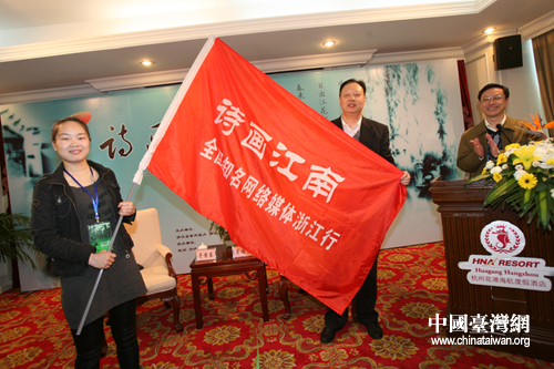 “詩(shī)畫(huà)江南——全國(guó)知名網(wǎng)絡(luò)媒體浙江行”授旗儀式 (中國(guó)臺(tái)灣網(wǎng) 李典典 攝)