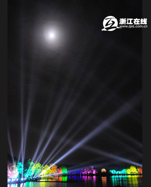 今天晚上,參加由浙江省委外宣辦、省旅游局和浙江在線新聞網(wǎng)站舉辦的“詩畫江南——全國知名網(wǎng)絡媒體浙江行”采訪團就現(xiàn)場感受了一番“印象西湖”的美麗。