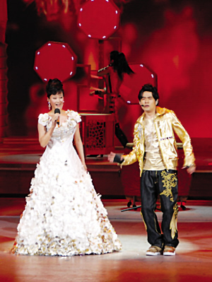 昨日最后彩排的另一個(gè)亮點(diǎn)當(dāng)屬“英倫配”,周杰倫和宋祖英果然合作了一小段《本草綱目》的副歌。周杰倫身穿黑色和金色相間的舞臺(tái)服上場(chǎng),很有潮人派頭,一曲《本草綱目》唱的現(xiàn)代感十足。當(dāng)周杰倫唱到《本草綱目》中頗似《辣妹子》的副歌部分時(shí),一襲白裙盡顯典雅端莊的宋祖英款款出場(chǎng),與周杰倫合唱一小段,兩人南轅北轍的唱法融在一起別有特色。有趣的是,當(dāng)宋祖英在深情演唱時(shí),周杰倫則在一邊大秀Hip-h(huán)op風(fēng)格的舞蹈動(dòng)作。現(xiàn)場(chǎng)觀眾表示兩人無(wú)論是唱腔還是舞臺(tái)風(fēng)格都頗為沖突,反倒形成了一種沖突的美感,這樣的合唱在春晚的舞臺(tái)上實(shí)在少見(jiàn),有點(diǎn)新意。據(jù)了解,前日凌晨?jī)牲c(diǎn)周杰倫與宋祖英在錄音棚進(jìn)行了合音錄制。兩人有禮貌地握手,還聊了一會(huì)。據(jù)說(shuō)周杰倫更稱(chēng)自己終于見(jiàn)到了偶像,周董甚至主動(dòng)提出要寫(xiě)一首兩人合作的歌曲。