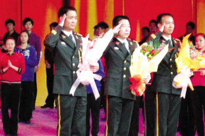 航天英雄臺(tái)上敬禮。揚(yáng)子晚報(bào)記者 張 漪/攝