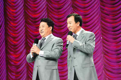 圖為姜昆(左)和戴志誠在表演新作《我有點暈》。