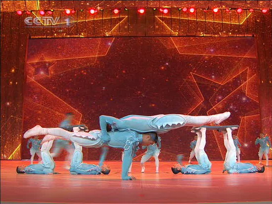 新浪娛樂訊 2月13日(除夕)晚20:00,2010年央視春節晚會通過中央電視臺面向全球直播,新浪娛樂同步視頻圖文直播。圖為雜技《試比天高》。