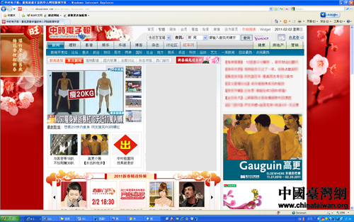 臺灣中時電子報在首頁顯著位置設置專區,直播央視春晚。