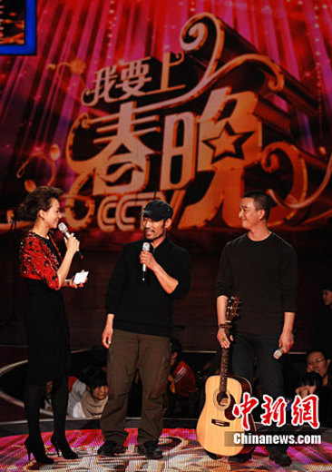 12月27日,經過千萬網友票選,因演唱 “農民工”版《春天里》而走紅的流浪歌手組合——旭日陽剛獲得了參加2011央視春晚演出的通行證。圖為旭日陽剛在“我要上春晚”節目錄制現場的資料圖片。中新社記者 李學仕 攝