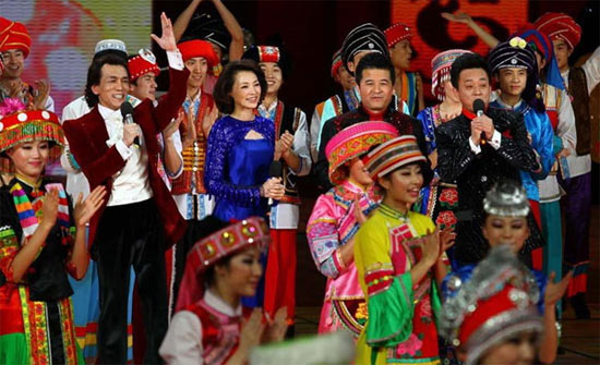 久未露面的劉歡在晚會尾聲時演唱了歌曲《大愛》。這首歌曲的頭兩句是:“親,就在我面前;親,延伸我的視線……”有網友驚呼:“親……你這不是淘寶體嗎?”