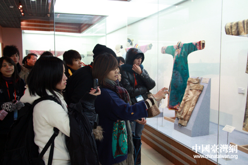 參加全國臺聯2009年冬令營的臺灣少數民族師生,今天來到中央民族大學交流聯誼。圖為師生們參觀中央民族大學博物館(鐘寶華 攝)